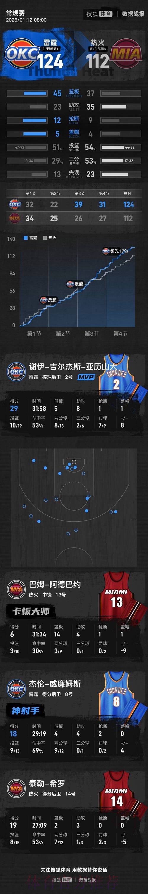 亚历山大火力全开雷霆青年军完成又一次宣言 当一支年轻球队开始学会如何稳定地赢下本该赢的比赛时,往往意味着它真正踏上了从潜力到实力的进阶道路。雷霆击败热火、收获三连胜的这场较量,正是这样一个清晰的
